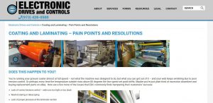 It’s time for you to master unwinds, rewinds, flying splices, printing heads, laminators, accumulators, and more. Navigate to the page today to learn more about coating and laminating and advance your manufacturing process with EDC’s guidance. Additional topics covered are common pain points, resolutions, upgrades, and best practices for coating and laminating machines, including how to know when it’s time for a full retrofit.