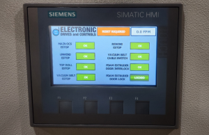 Finally, all existing E-stop buttons were replaced with late model equivalents with up-to-date safety ratings. A dual channel E-stop string tied to the safety controller ensured the utmost in failsafe reliability. Status of all safety components was displayed on a newly installed HMI ensuring operators are informed and have multiple ways to take immediate action in case of an emergency.