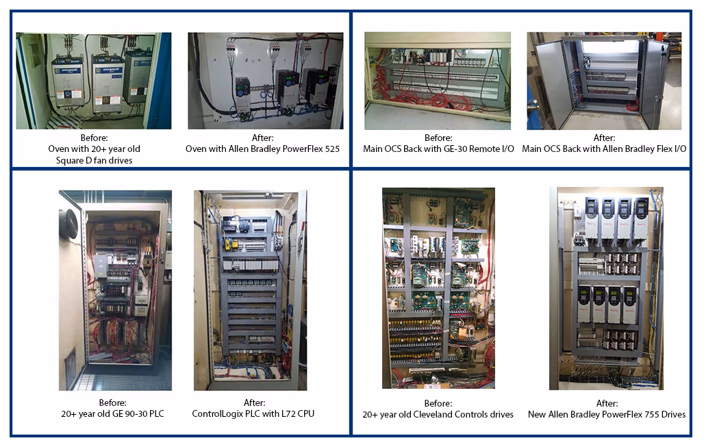 At the heart of the problem was the equipment’s legacy control system. The coater was built in the mid-90s and the existing obsolete drives and controls were no longer supported by the original manufacturer. The equipment could no longer be adequately serviced due to the lack of technical support and availability of replacement components and parts. The frequency of downtime was increasing as well as frustration for the hours of service required.