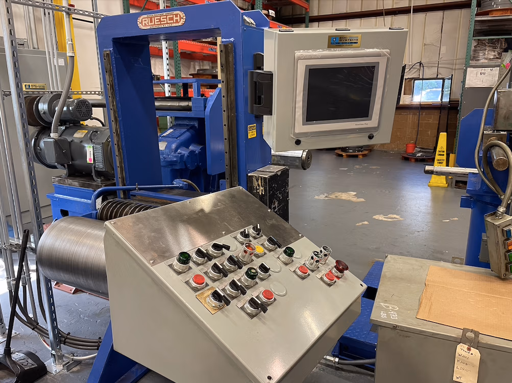 Reviving outdated machinery with modern controls demands strategic planning. This was the case when an EDC client acquired a 1960s-era Ruesch Slitting line from an auction. “The client bought the individual pieces of the slitting line. Everything was obsolete, defunct,” said EDC Project Manager Joe Maloney. “The client didn’t have any electrical drawings. Everything had to be refurbished and there were no controls. The client bought this slitter and they needed us, the systems integrator, to provide controls and integrate it back to working condition, which was no small feat.”